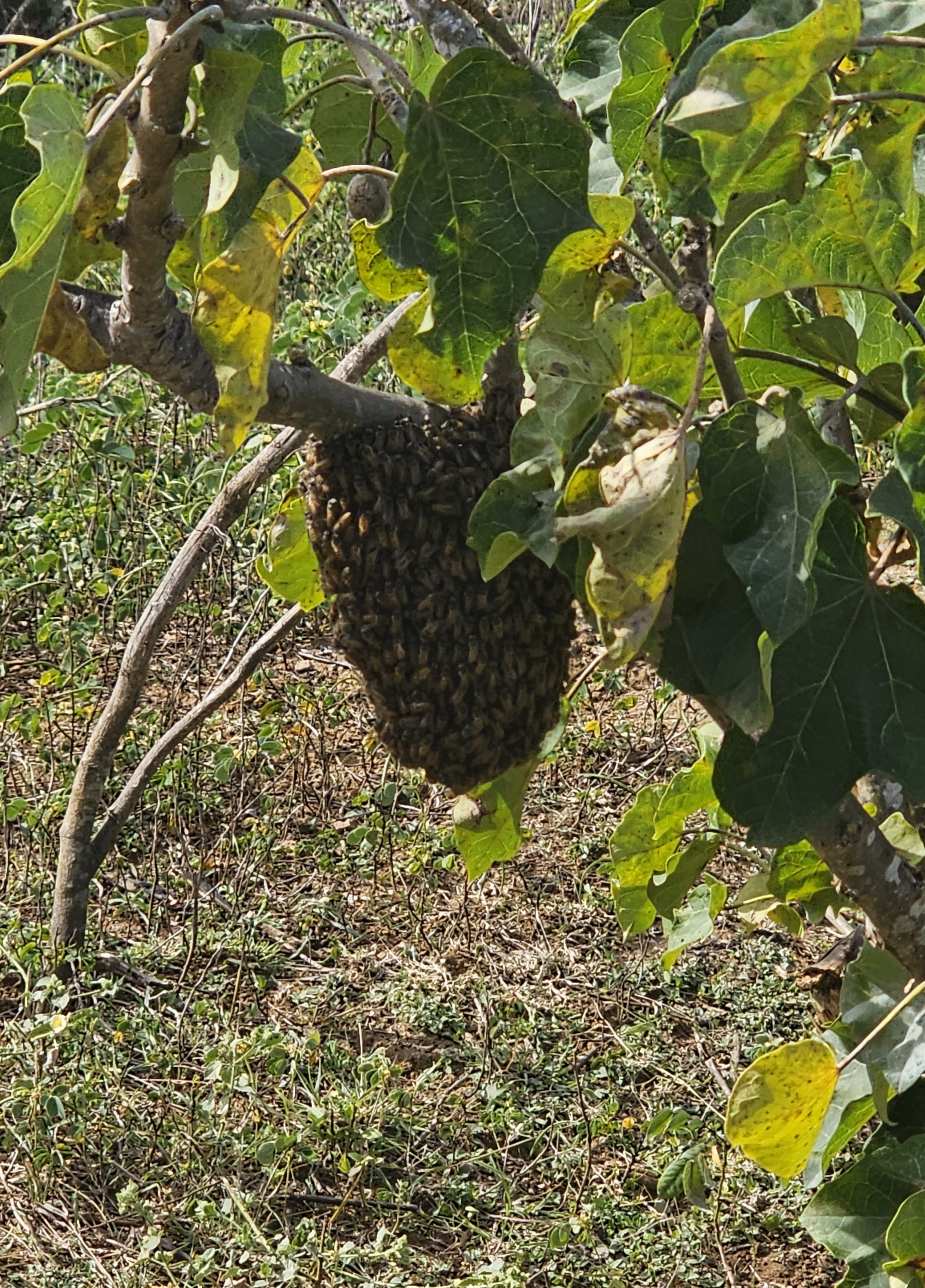 Midway through the training, we even witnessed a bee colony rescue and resettlement. This was not part of the curriculum, but the expert eyes of the co-trainer, even during his lunch break, spotted this colony and moved into action.
